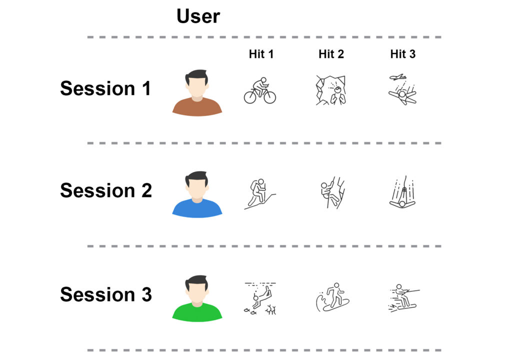 A hit contains information like Client Id, Time of the hit, and the Page viewed. Generally, during a session multiple hits are made as users visit different pages on the website.